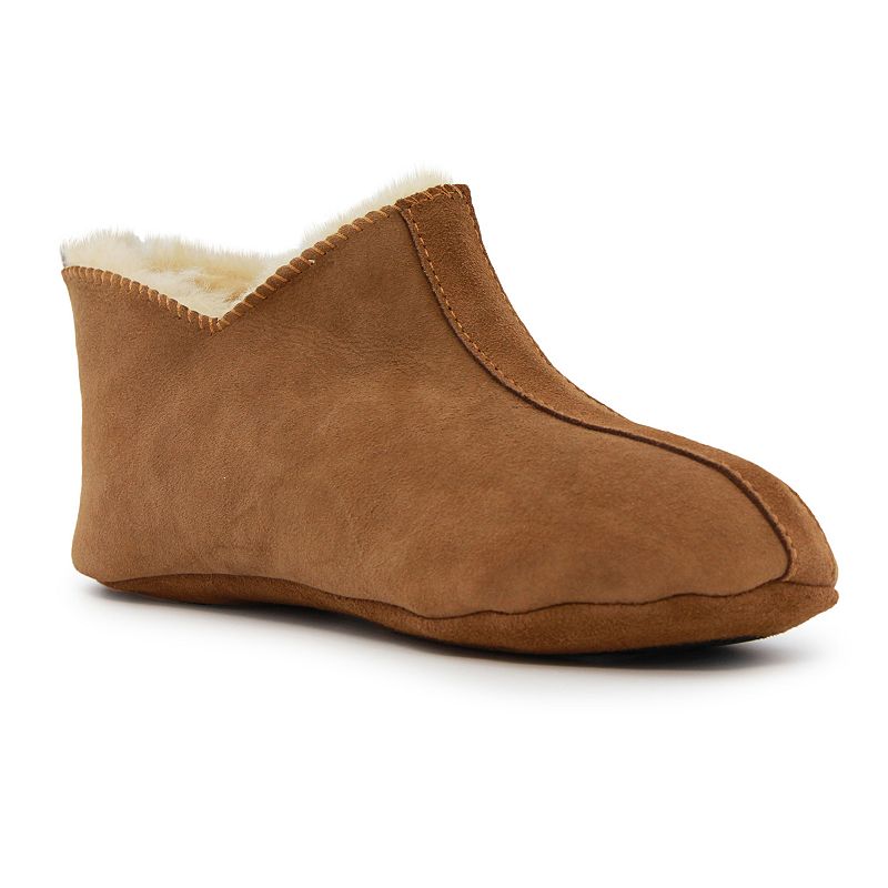 Slipper Features Stitched trim Soft outside, plush inside Center vamp overlay Heel pull tab Traction sole Slipper Construction Sheepskin upper \/ lining EVA midsole Rubber outsole Slipper Details Round toe Pull on Padded footbed Size: 5